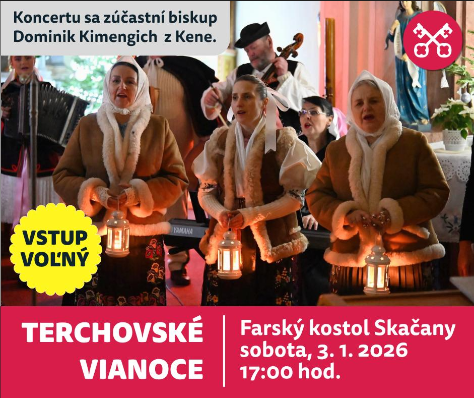 Pápežské misijné diela a Farnosť Skačany pozývajú v sobotu 3. januára 2026 o 17,00 hod. do farského kostola v Skačanoch na koncert pod názvom „Terchovské Vianoce“. Koncertu sa zúčastní aj biskup Dominik Kimengich z Kene.
