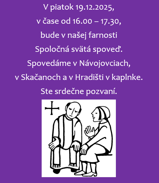 Koledníci Dobrej noviny budú ohlasovať radostnú zvesť narodenia Pána, aby tak priniesli do rodín pokoj a požehnanie a zároveň prispeli aj k zmierneniu biedy v Afrike. V Skačanoch bude koleda 26.12., začína sa o 13.00 pri kostole. Kto ešte máte záujem, môžete sa zapísať vzadu v kostole.